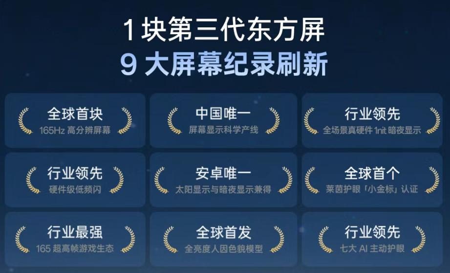 10月14日,京东方与OPPO、一加手机联合发布东方屏3.0,将手机屏幕正式带入超高刷时代。该屏幕同时具备全球首款原生165Hz超高刷新率、超低亮1nit显示、通透自然等特性,并搭载京东方LTPO2.0自适应刷新技术,可在1Hz至165Hz之间根据使用场景自动调节。