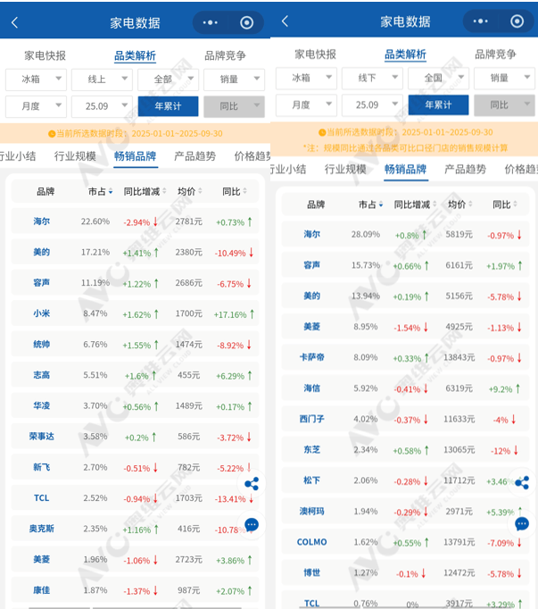 2025年1月至9月,中国冰箱市场在复杂的宏观经济环境与消费分层趋势下,展现出鲜明的“双轨制”发展特征,即线上与线下渠道在规模、均价、品牌竞争格局上呈现出截然不同的面貌,整体市场在结构性调整中寻找新的平衡点。