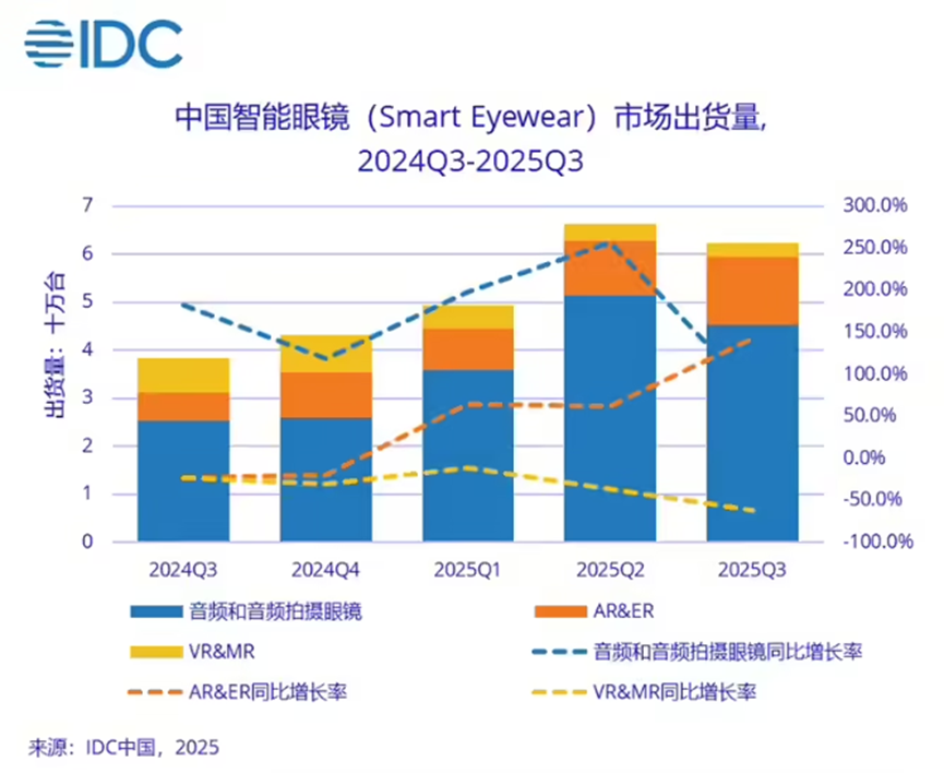 国际数据公司(IDC)报告显示,2025年上半年全球智能眼镜出货量高达406.5万台,同比激增64.2%;第三季度单季出货量进一步达到429.6万台,同比增长74.1%。中国市场表现尤为亮眼,增速领跑全球,预计2024至2029年的五年复合增长率将达到55.6%。市场的火热吸引了Meta、苹果、华为、小米、雷鸟创新等全球科技巨头争相入局,一场围绕“下一代计算终端”的竞赛已然全面展开。