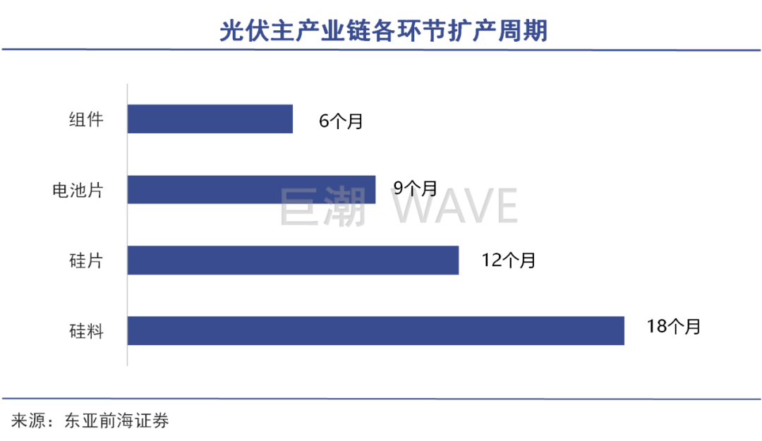 且由于组件和电池片的扩产周期是最短的,仅需要半年到九个月时间,即使该环节出现可观利润,也很长久维持。