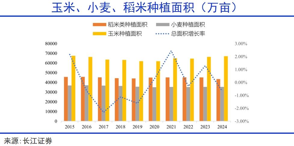 我国水稻、小麦这两大口粮的种植面积和产量都要低于工业属性更强的玉米,再加上消费结构的转变,以及养猪、水产、酿酒、医药等行业的庞大需求,据预测,即便是以10年后的产量计算,依然不能满足国内需求。