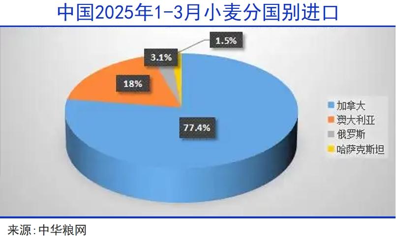 小麦的情况类似,前三月总进口量仅有27万吨,由加拿大、澳大利亚、俄罗斯和哈萨克斯坦四国瓜分,美国的身影已经消失不见。