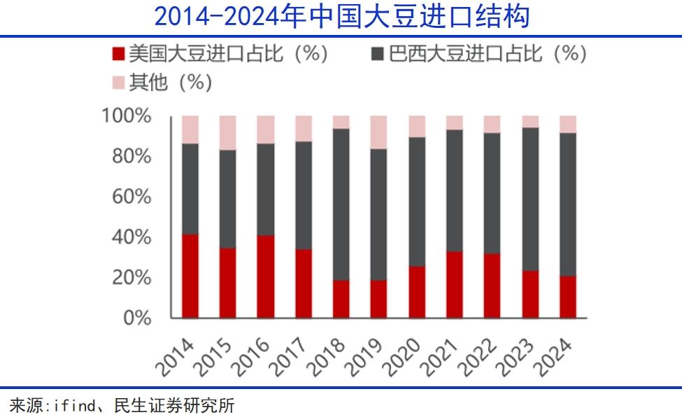 预计二季度,我国将从巴西、阿根廷、乌拉圭进口超3000万吨大豆,通过更加多元的进口渠道,进一步稀释对美国的依赖。