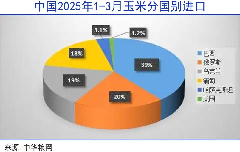 玉米也不例外,3月我国外购玉米8.1万吨,巴西一国就贡献7.47万吨,占进口总量的92%,而自美国进口的玉米只有794吨,占比仅0.19%,前三月美国玉米占比也只有1.2%,远远低于去年的15%。