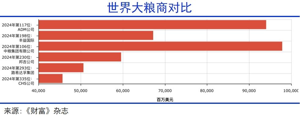 企业层面的动作也非常多。中粮集团收购来宝农业、荷兰尼德拉农业,在南美、黑海等粮食产区和亚洲新兴市场间建立稳定的粮食走廊。当前,其一半以上收入来自海外,成为全球抗衡“ABCD”四大粮商的中国因素。