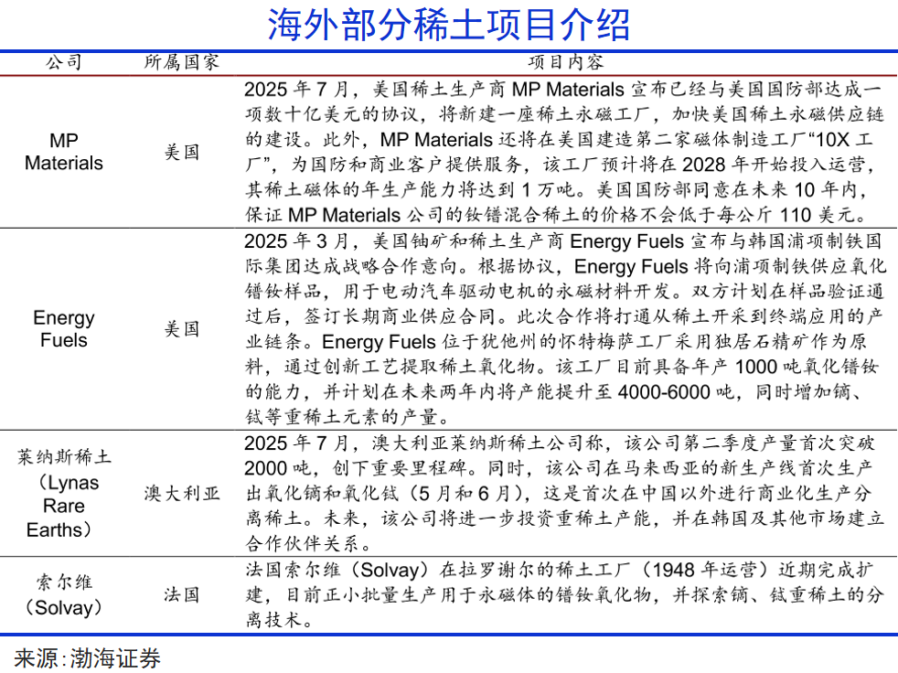 美国所主导的海外在建稀土矿或永磁材料项目,表面如火如荼,但实际进展缓慢。不仅建设也需要2-3年左右,且受到当地环保压力、资本开支、政策等不确定性影响巨大。