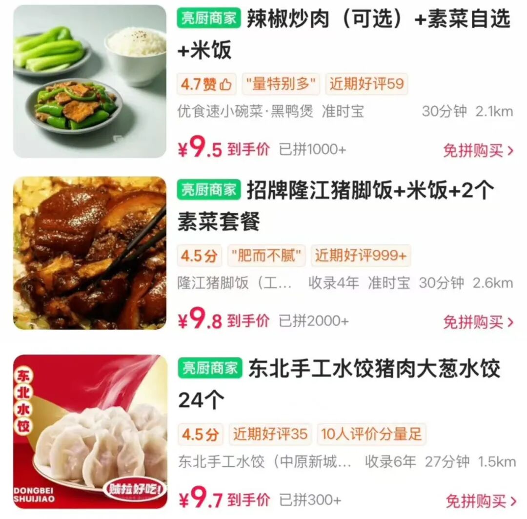 如今的拼好饭里,有着外卖的“极致价格”:一份辣椒炒肉盖饭卖9.5元,一份猪脚饭卖9.8元等等。