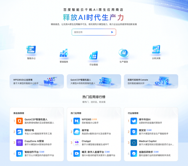 企业用户可以通过百度智能云官网,进入千帆AI原生应用商店,选购心仪的AI原生应用。