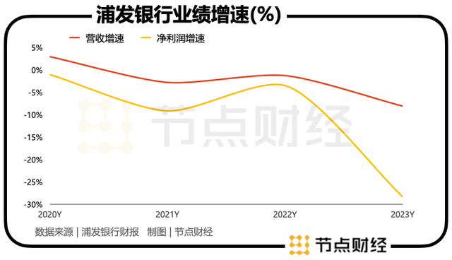 到了2023年,这一降幅急剧扩大到28.28%,结合浦发银行此前的波动轨迹,虽然在情理之中,但“自由落体”的速度如此之快,四年少赚216亿,还是让外界大感意外。