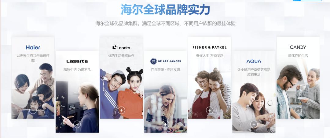 现在,海尔智家旗下海尔、卡萨帝、Leader、GE Appliances、斐雪派克、AQUA、Candy七大品牌矩阵,辐射全球用户家庭。
