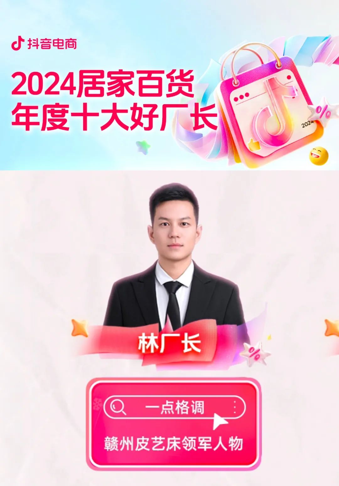 林日平也获得了抖音电商“2024年居家百货产业带好厂长”的荣誉称号,荣誉背后是源头好货的品质保障,也是产业带中“工厂型商家”在直播间中的不断探索。