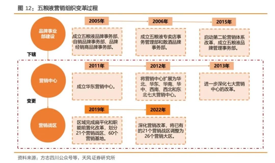 在营销体系的整体变革上,2025年初,五粮液启动了大刀阔斧的营销变革,成立酒类销售公司,整合原五品部和27个营销大区,组建9个职能部门,并将全国市场划分为北部、南部、东部三大营销片区。
