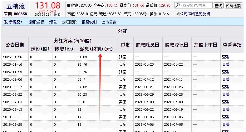 在白酒行业深度调整的背景下,五粮液以稳健的财务表现和抗风险能力,展现了龙头企业的战略定力和发展韧性。而对于投资者来说,稳健的业绩是价值的基石,而对股东的回报则是这种价值最直接的体现。