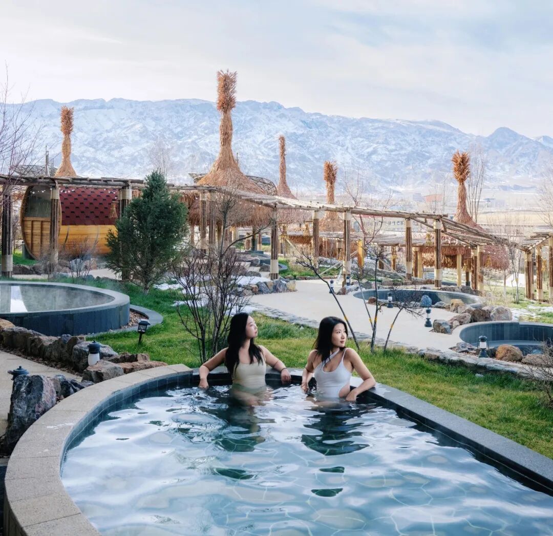 以新疆温泉赛里木湖花间堂·阿日相为例,在距离赛里木湖一小时车程的地方,不仅有丰富的温泉资源与雪山的独特风景,还有氛围十足的在地文化体验:品尝正宗蒙式下午茶、和家人一起尝试手工拼接马头琴、傍晚参与日落仪式……无疑是一场感情升温的美好旅程。