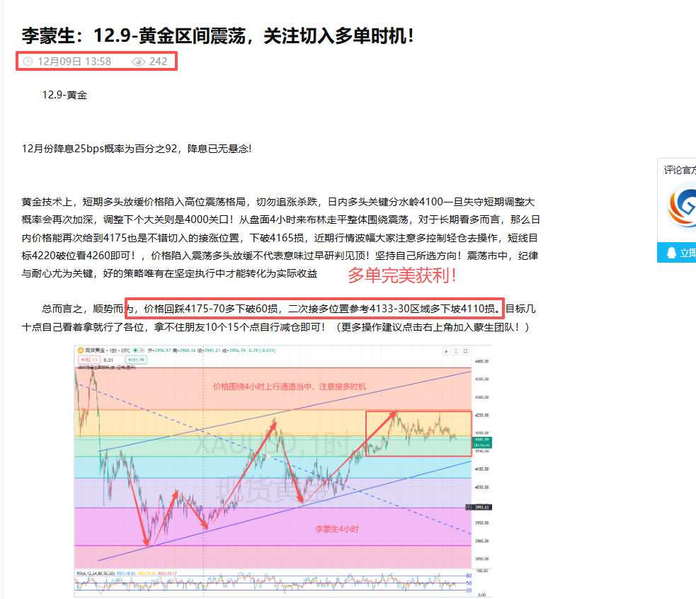 李蒙生:12.10-黄金白盘仍是震荡格局,注意高空低多合适时