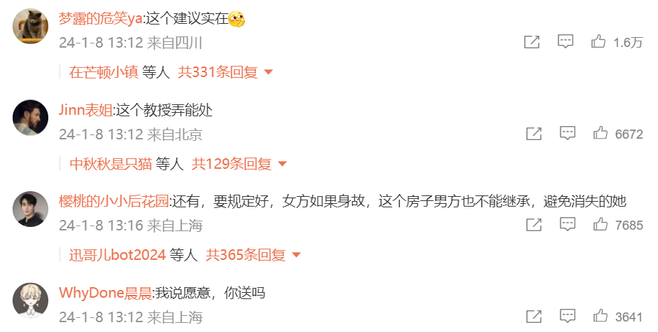 专家的这番言论成功登上了热搜,网友们也进行了激烈的讨论。从评论区的留言来看,大多是支持专家的。点赞最多的一条评论是“这个建议实在”,已经有1.6万个赞。