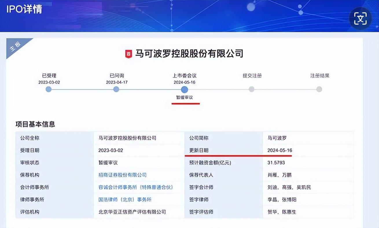 在问询一年之后,2024年5月16日,深交所对马可波罗做出了暂缓审议的决定。由于这是上市新规发布后审议的第一家,市场各方都非常关注。