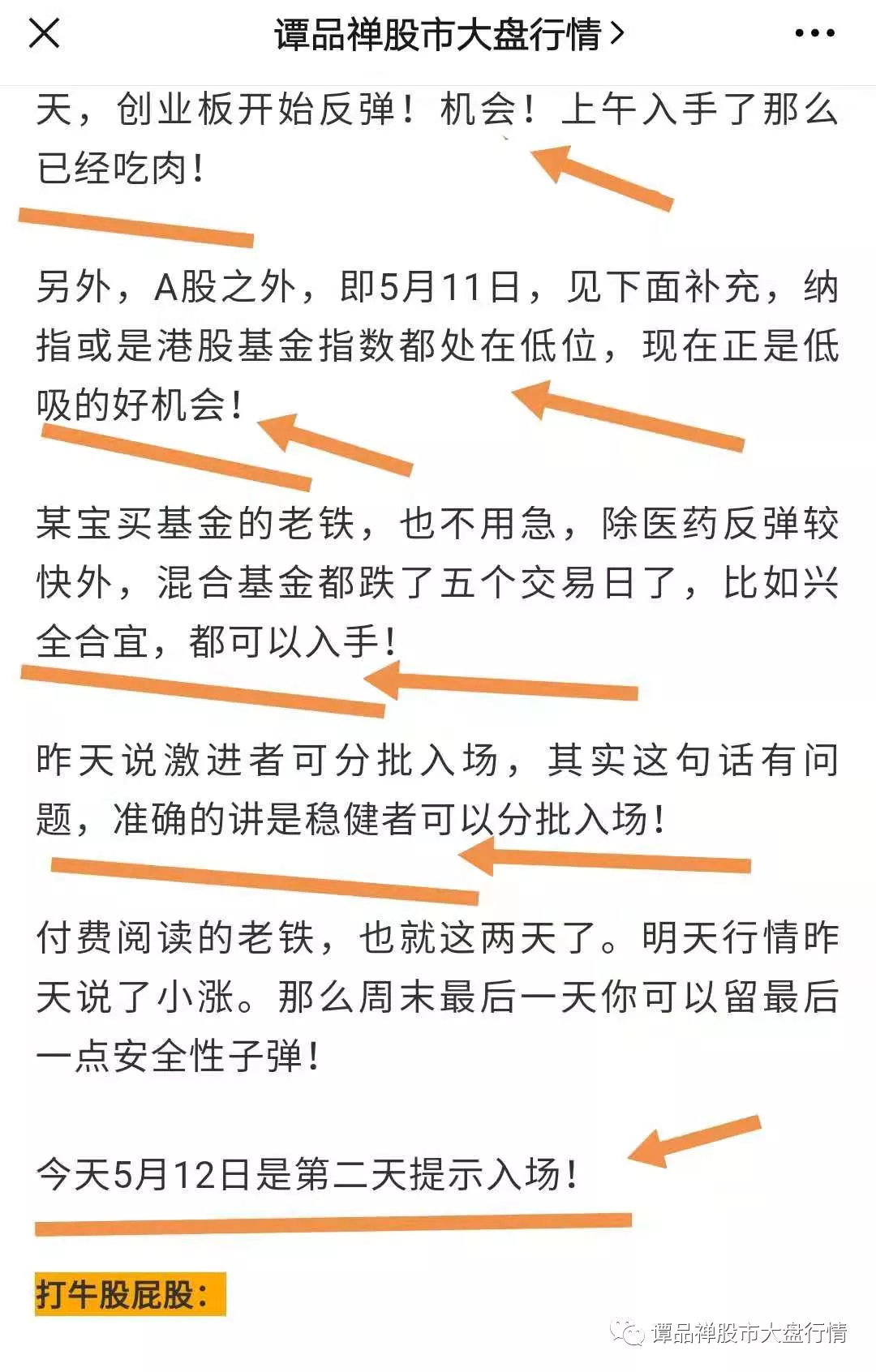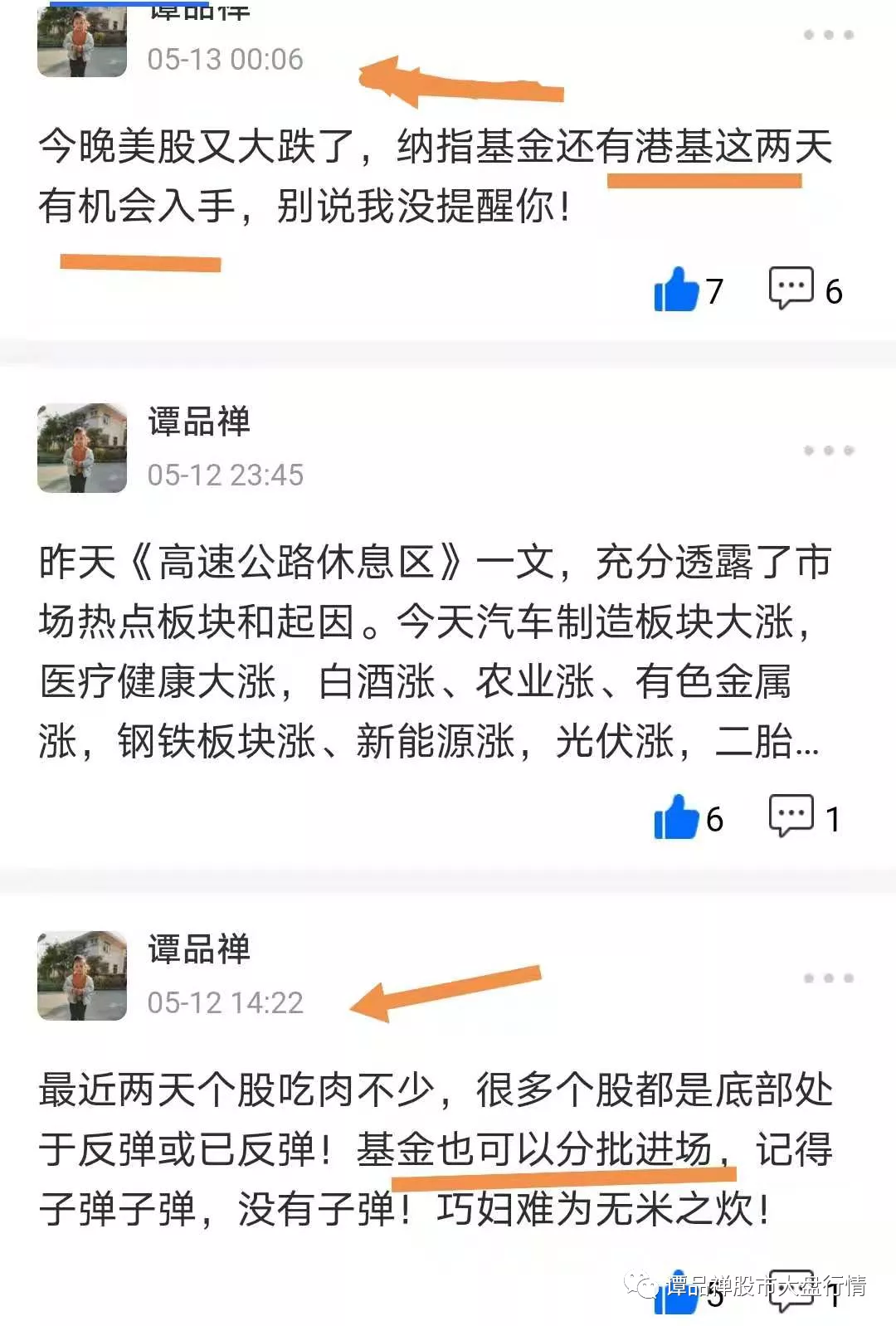 5月13日前后三天,谭品禅已经三次提示加仓入场!