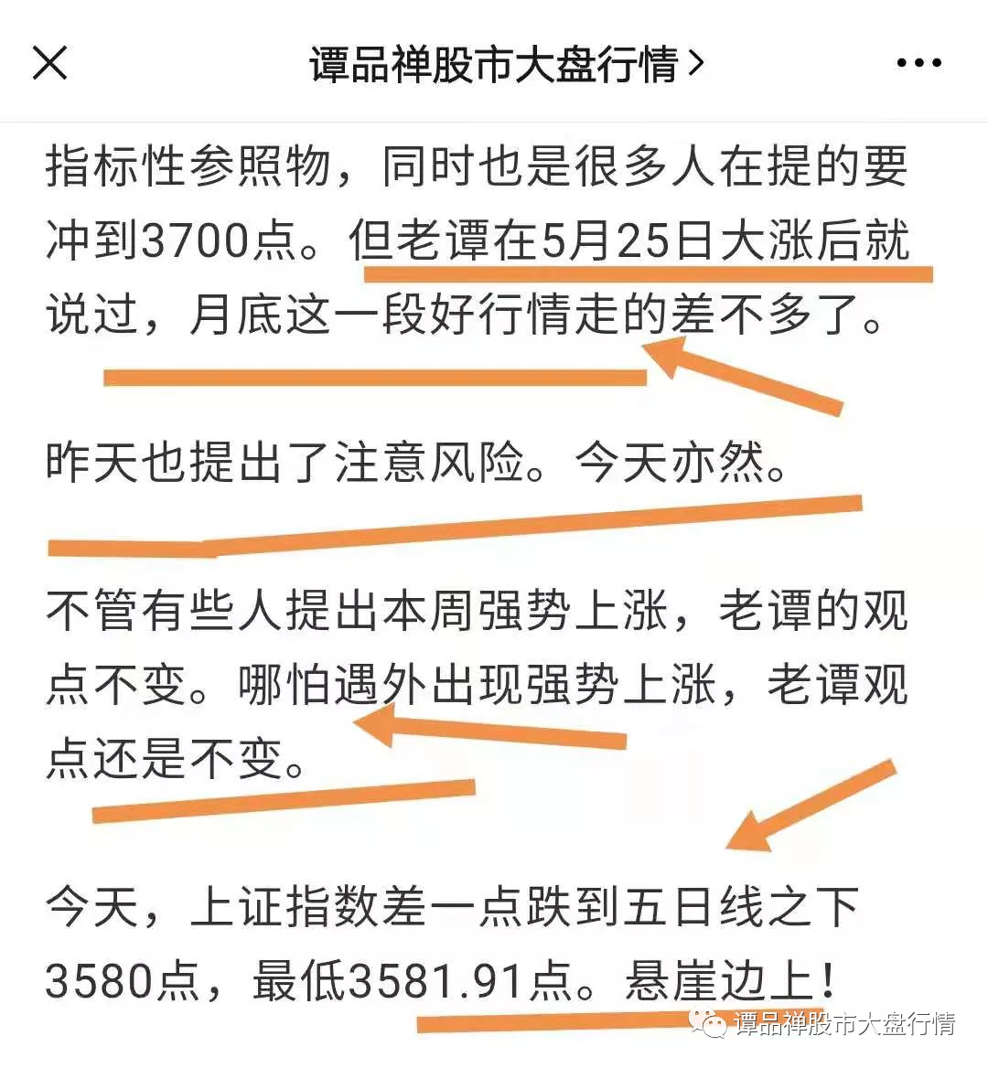 老谭在其他地方发的提示也没有几个人看,我们就从谭品禅股市分析公丛号里找,找找4月底发的文章。