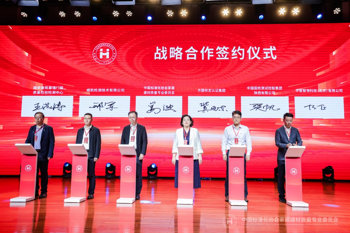 在签约仪式上,主任委员姜波代表专委会同方圆标志认证集团、威凯检测技术有限公司、国家建筑幕墙门窗质量检验检测中心、中国国检测试控股集团陕西有限公司、中智智领科技(北京)有限公司等行业权威机构签署战略合作协议,开展检验检测认证及标准化人才培育等方面工作,共同助力家居建材行业高质量发展。