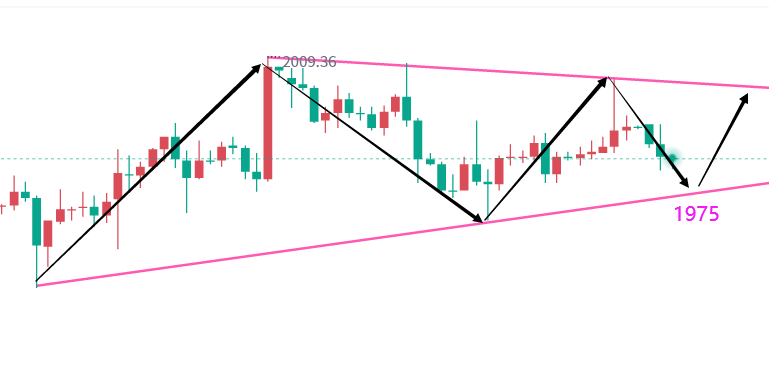 尽管如此,我们也不能忽视黄金目前仍然保持多头趋势的事实。从技术图形上看,日线的布林带已经开始收口,这意味着价格可能会在一段时间内保持稳定。在没有突破2009双顶之前,我们不应过分看涨,认为价格会直接上涨到布林带上轨的2042。相反,如果价格向下突破,那么我们应关注60日均线的支撑位1920,或者更大的下跌空间至日线布林下轨的1860。