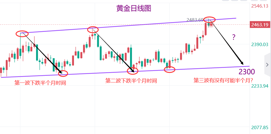 黄金市场在周三按照之前的预期走出一波显著的大跌,最高触及2483水平,但随后迅速回落,最低探至2451,全天波动幅度达到32美金。对于一直关注文承凯分析的朋友们来说,周三的提示并非空穴来风。文承凯明确指出,黄金在当前价位已经积累了相当的涨幅,应谨慎看涨,避免盲目追涨,并预测市场可能出现调整性大跌。现在,行情已经验证了这一判断。