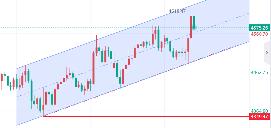 日线级别:黄金整体仍处于上升趋势框架内,当前进入高位整理阶段。上方关键阻力聚焦4660-4750美元附近,该位置多次压制价格上行,形成明确技术阻力;下方核心支撑为4500美元整数关口,若有效跌破,可能引发阶段性回调。