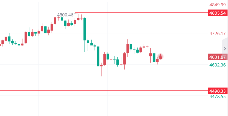 4小时级别:区间胶着,等待破,4小时周期呈现震荡格局,布林带收口、均线系统粘合,暂时缺乏单边行情动能。上方4800美元形成强压制,下方4500美元构成关键支撑,在区间未被打破前,金价将维持震荡整理;一旦突破上下关键点位,需结合消息面判断单边行情延续性。