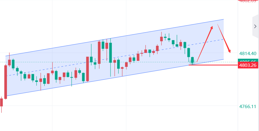 综合来看,周二思路与周一保持一致:黄金整体结构偏强,依旧以4750-4850小区间震荡为主,可灵活把握短线机会。今日黄金操作思路上文承凯建议低多看涨为主,反弹高空为辅,上方阻力4850-4900,下方短线支撑4800-4750。早盘建议在4800附近看涨,此外,22 号美伊停火协议即将到期,这一时间窗口大概率引发市场剧烈反应,届时我们再根据实际动向跟进布局。