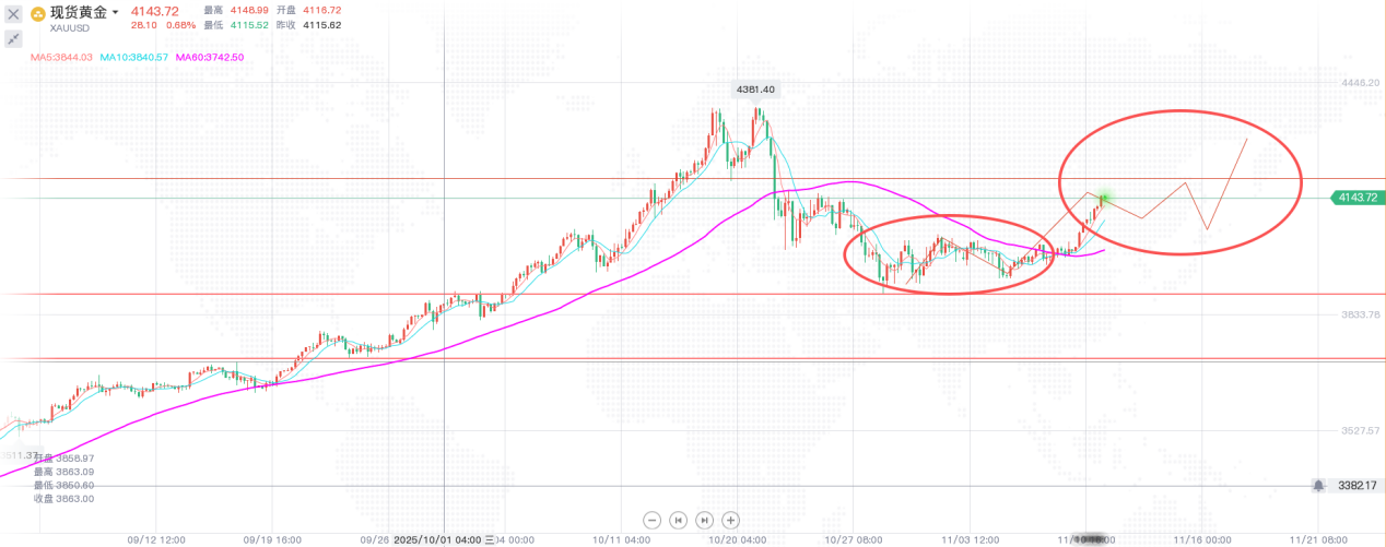 昨天我给出提示,黄金除了4065附近可能有停摆,剩下的就是盯紧4116这个位置了