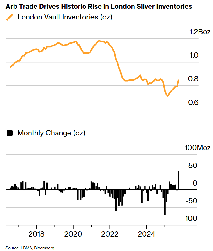 【套利交易推动伦敦白银库存历史性上升】