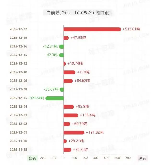 白银ETF(iShares Silver Trust)单日增持超533吨,创近两年最大增幅。铂金、钯金也同步创下多年新高,显示贵金属板块进入全面强势阶段。白银的强劲表现吸引部分资金回流黄金,形成板块内轮动支撑。
