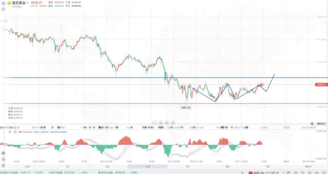 往上关注的阻力还是昨日的高点5038,稳住继续爬坡关注5053