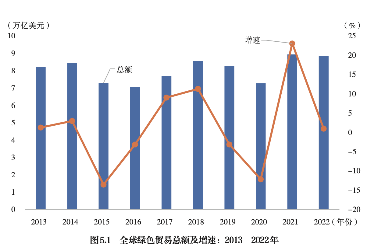 《世界开放报告》提到,2022年世界绿色进出口总额8.8万亿美元,仅占世界货物进出口的18.2%,仍有很大增长空间。