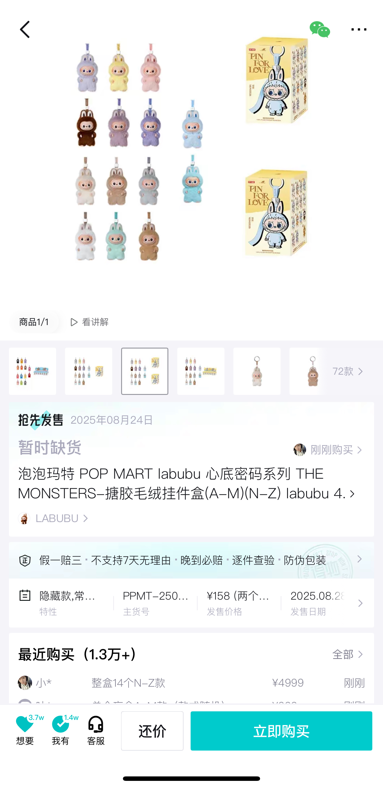 8月28日下午,一位卖家已经开始“预售”全新迷你LABUBU,她表示,随机盲盒的价格为79元一个,指定款式为128元一个,下单之后,次日即可发货。目前,该链接已有1.1万人浏览,759人想要。其主页介绍为:“拉布布爱好者,泡泡玛特内部人员,售卖的款均是正品。”
