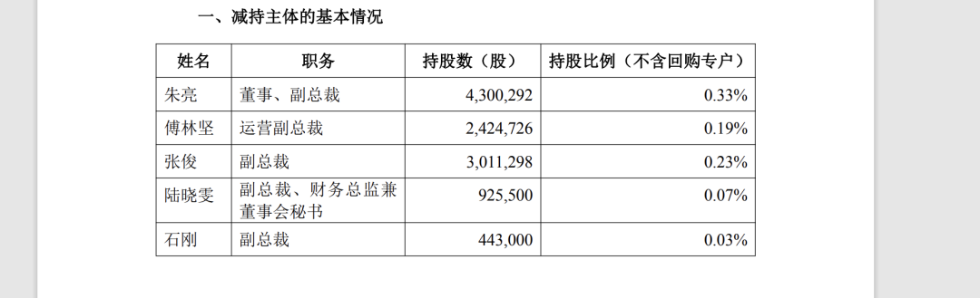 5名董事及高管计划在本公告披露之日起15个交易日后的三个月内(即2025年11月8日-2026年2月7日),以集中竞价或大宗交易方式减持公司股份合计不超过277.62万股,占公司剔除回购专用账户股份后的总股本比例0.21%。