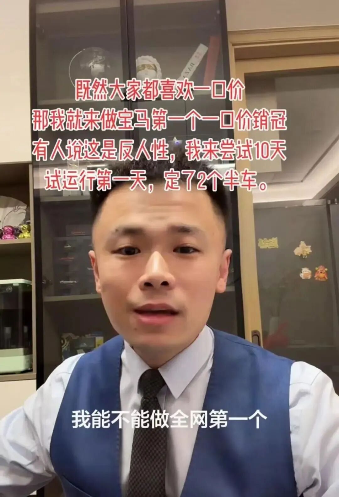 宝马网红销冠张增威回应试行“一口价”卖车:10天定出15台,压缩利润但省时