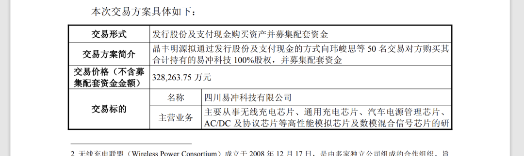 同日晚间,晶丰明源发布重大资产重组草案(上会稿),公司拟通过发行股份及支付现金的方式向玮峻思等50名交易对方购买其合计持有的易冲科技100%股权,并募集配套资金。本次交易构成重大资产重组。