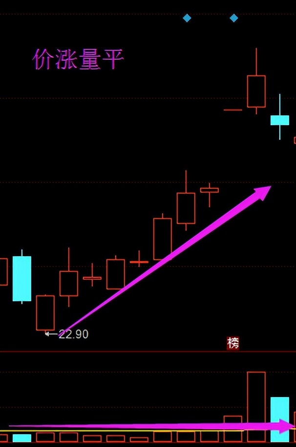 2、 价涨量平:价格上涨,但没人愿意卖出,继续维持原来趋势