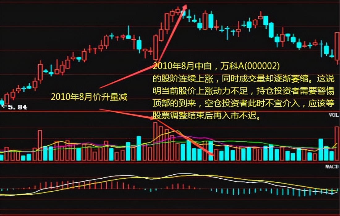 这种情形一般出现在牛市的末段或是熊市中的反弹阶段。投资者应酌量减少手中的持股,以免高位套牢。但如果以后股价继续上涨,成交量也相应增加则量减属于惜售现象,投资者仍可继续做多。