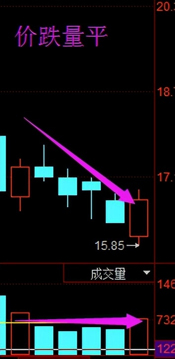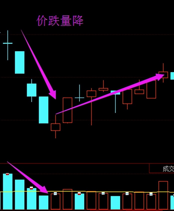 6、 价跌量降:价格跌了,大家都不愿意卖出,代表股价与量能的方向同步,买进力道减弱且人气涣散,做多者暂时不宜介入,最好是等待下跌趋势被改变之后再做考虑。