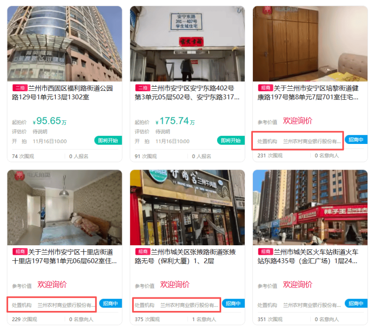 京东资产平台数据显示,自2025年以来,农业银行挂牌直售的房产标的超640个;兰州银行接近1800个,相比2024年增长 57%;吉林银行超2000个,天津银行超1220个。