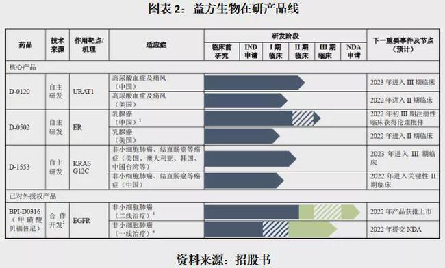益方生物目前有3个核心在研产品和1个已对外授权的在研产品。