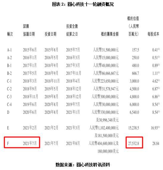 2021年的F轮投后估值为275亿元,那到了2024年3月,圆心科技的估值该为多少?
