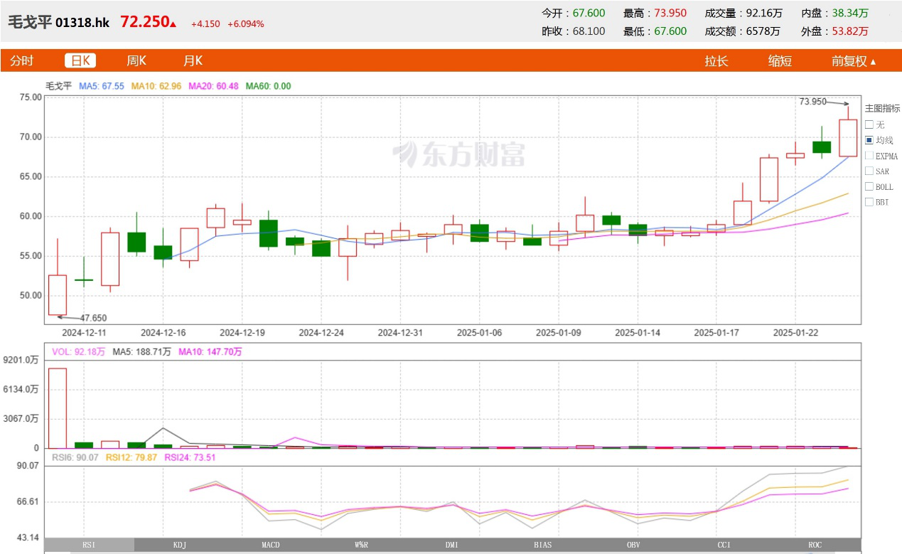 在港股市场,美妆板块一直备受关注。然而,相较于国际美妆巨头,本土高端美妆品牌却相对稀缺。毛戈平(1318.HK)的成功上市,打破了这一格局,成为港股市场上稀缺的本土高端美妆品牌之一。毛戈平独特的品牌定位和强大的品牌实力,使其在港股美妆板块中脱颖而出。