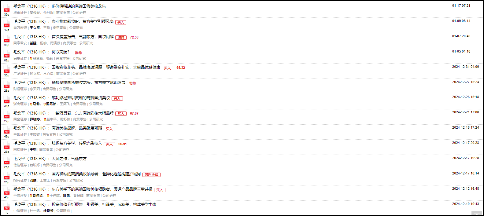 此外,这些研报还为毛戈平提供了宝贵的市场洞察和战略指导,有助于公司更好地把握市场趋势和消费者需求,进一步优化产品线和提升市场竞争力。