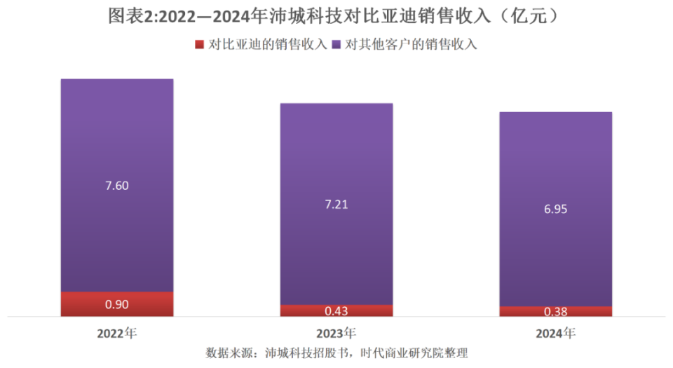 然而,即使是相对较为稳定的前五大客户之一比亚迪,报告期内其对沛城科技的销售收入贡献也呈现逐年下降的态势。