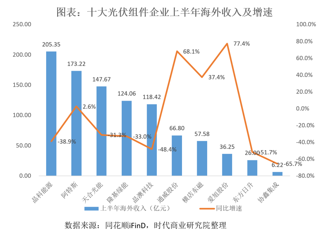 尽管上半年海外收入降幅较大,但从盈利端来看,光伏组件企业的利润仍主要靠海外市场贡献。