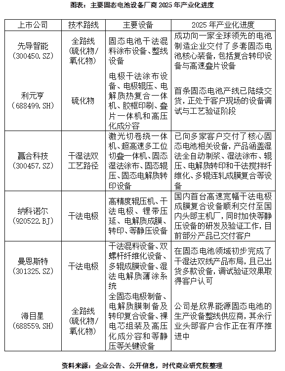 如今看来这一预言可能偏保守了一些,固态电池产业化的提档加速已成公认事实。多家电池设备厂家2025年已经有了可观进展,纷纷进入交付阶段。