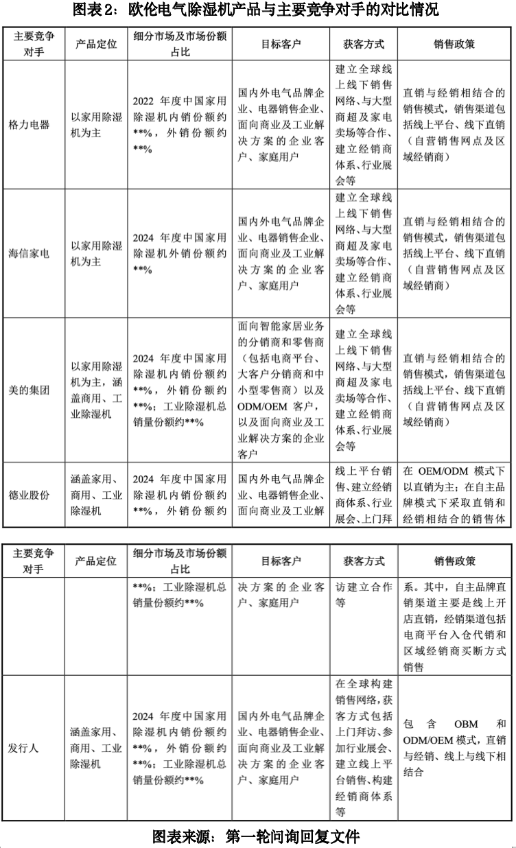 在第一轮问询函中,北交所要求欧伦电气说明与主要竞争对手在产品定位、细分市场及市场份额占比、目标客户、获客方式、销售政策等方面的差异。